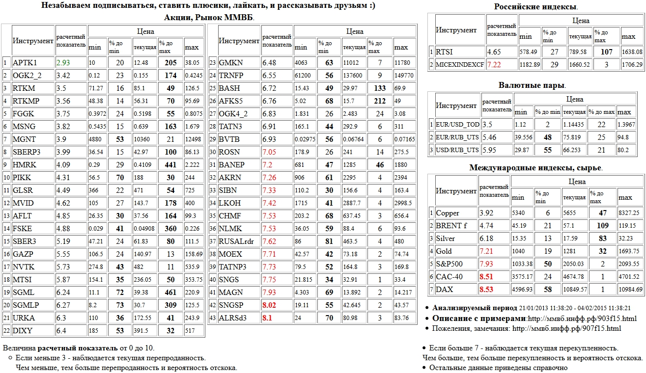 На 02/02/2016 10:34:38 при анализе акций рынка ценных бумаг ммвб, российских и международных индексов и валютных пар, сырья выявлено следующее - > Текущий анализ (архив, данные до 12.4.2016) - > Текущий анализ
