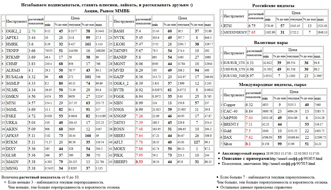 Сильно перекуплены: Сбербанк а.п. 3 в. ( SBERP3 ), Серебро ( Silver )Перепроданы: ОГК-2 ...