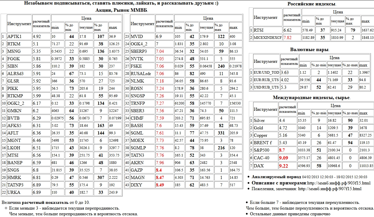 буду рад дополнениям, хотелось бы, что бы данная статейка кому-то помогла :) Анализируемый период 23/10/2012 15:35:43 - 06/11/2014 15:35:44 - > Текущий анализ (архив, данные до 12.4.2016) - > Текущий анализ сигнал Расчетный показатель (от 0 до 10).